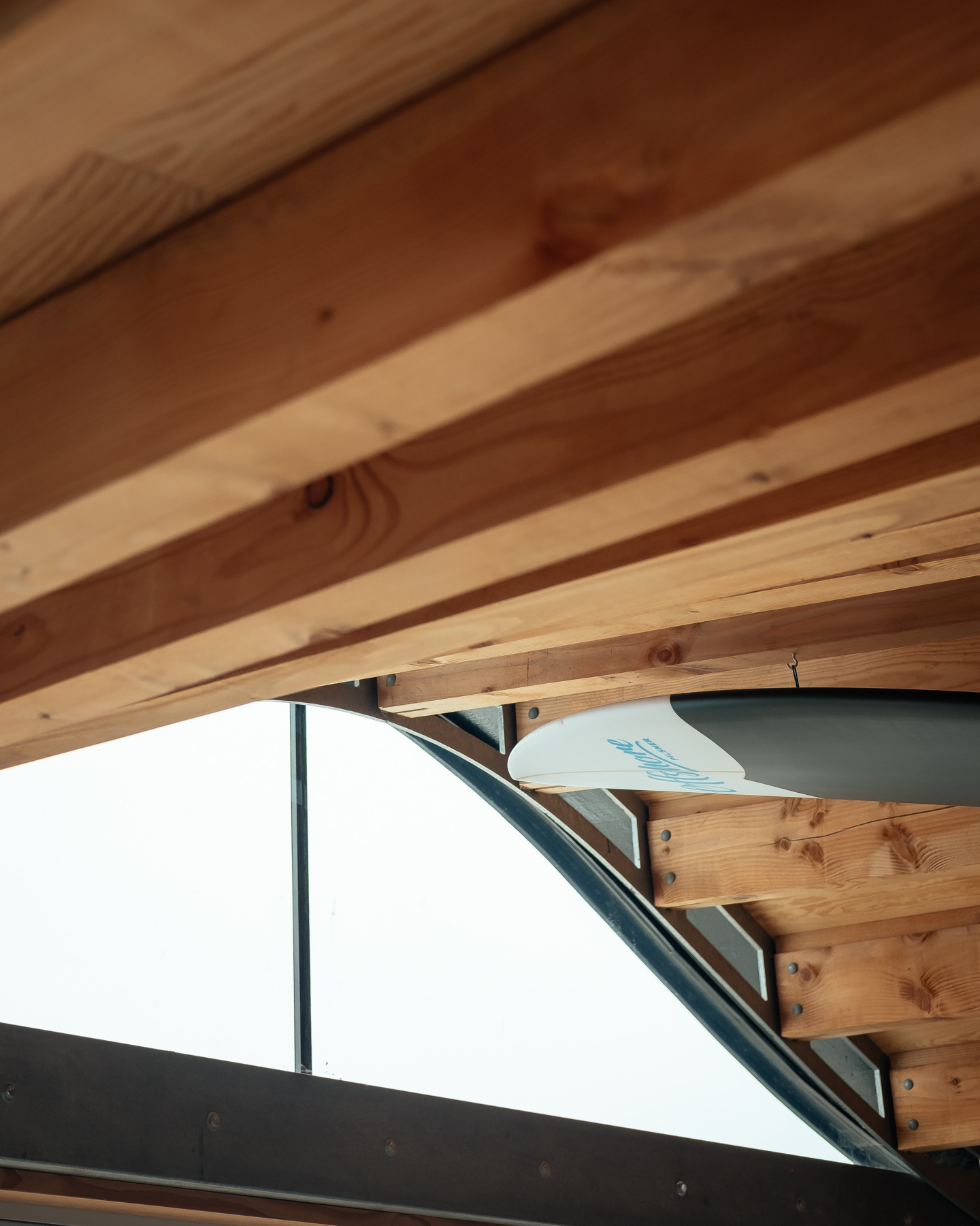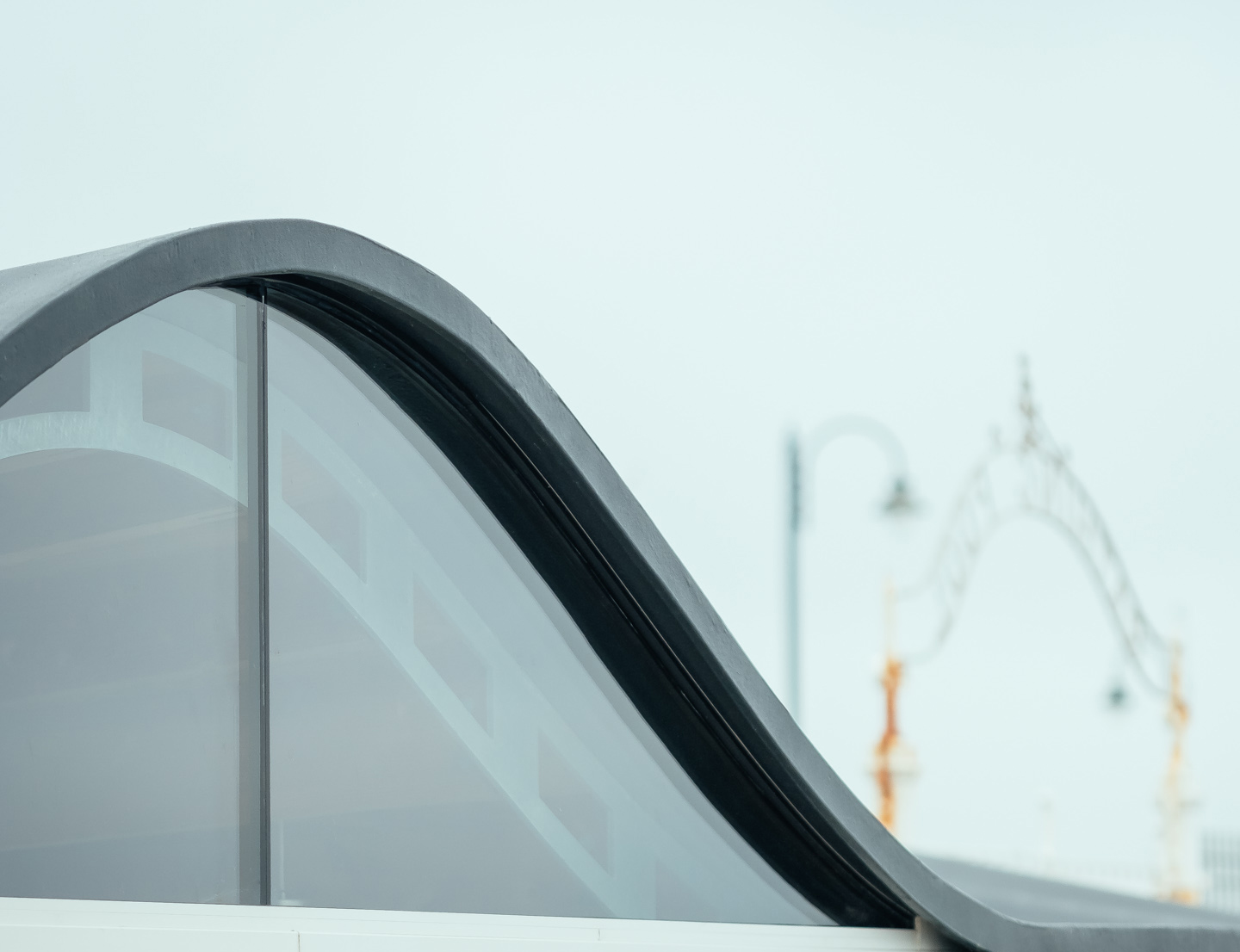 The sculpted roof that covers the length of the development references the forms of the pool itself and transitions from gentle undulations facing the street to strong horizontal lines facing the pool, resonating with the poolside condition. The roof is formed from sinuous shamed galvanized steel. The choice for galvanized comes from the fact that the building is one of very few that sits below the Sea wall and so is constantly being attacked by the sealine environment. To counter this galvanized steel was the only solution.