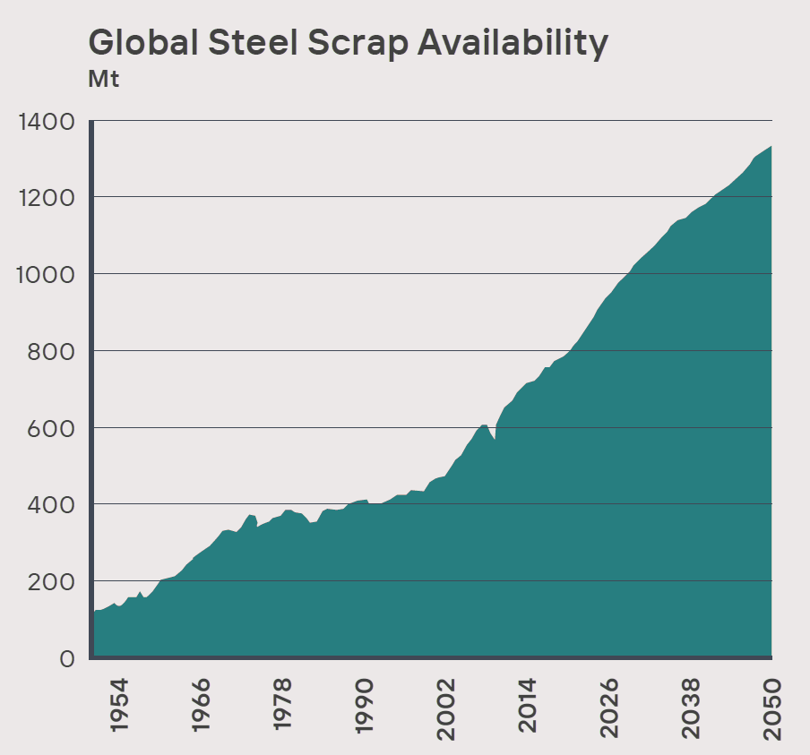 Maximise scrap use – steel is already the world’s most recycled material and global scrap availability is expected to reach one billion tonnes by 2030, leading to further reductions in the CO2 per tonne of steel produced.